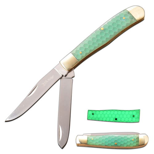 Elk Ridge Dual Blade Trapper features a glow-in-the-dark carbon fibre handle.