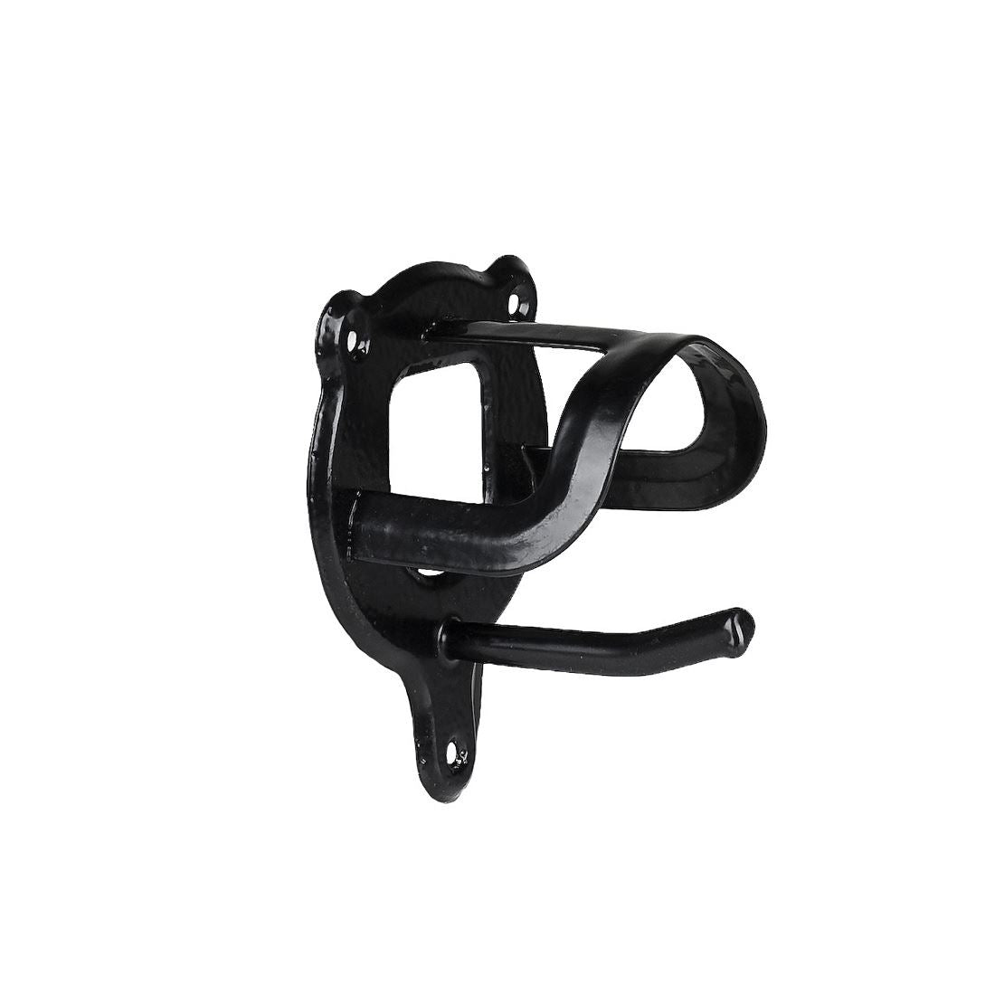 Metal bridle bracket that can be screwed or nailed onto tack room walls, for hanging bridles and halters.