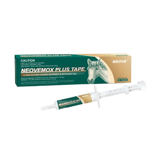 Neovemox Plus Tape Long Acting Wormer & Boticide Gel is a top-tier choice for horse owners seeking effective parasite control. Combining moxidectin and praziquantel, this gel formulation is tailored to treat tapeworms, large strongyles, and small strongyles with ease. Its palatable nature ensures horses readily consume it, facilitating hassle-free administration. The gel's efficacy extends to eliminating encysted stages of small strongyles and managing early stages of parasites like pinworms, ascarids, and stomach bots.